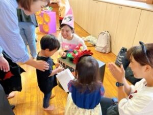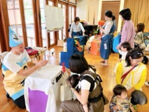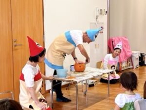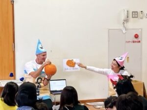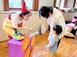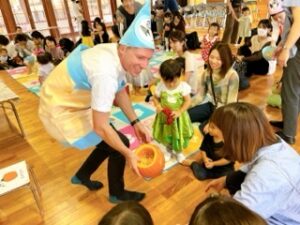 今日は、地域の未就園児親子さんが来園し、ロバート先生と一緒にHalloween