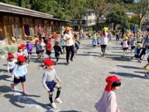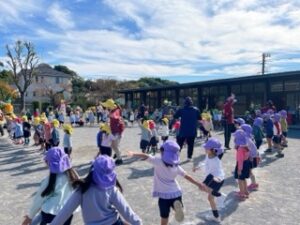 園庭いっぱいに広がりながら、皆でグルグル🌀スキップするのも楽しそうでした😊