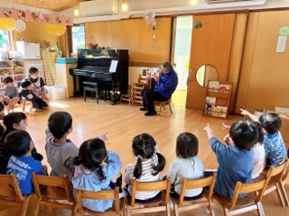 園長先生からのプレゼントは、『きんぎょがにげた』の絵本を見せてくれました📕