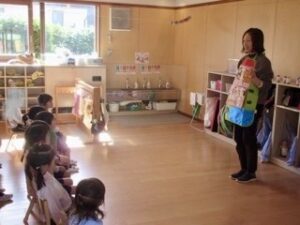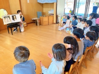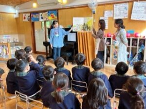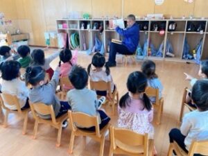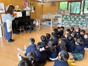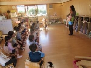 帰りの時間には、年中組に絵本クラブのお母さん達が絵本の読み聞かせに来てくれまし