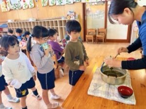 集会🎵/年少組誕生会🐣/年長組ダイコン味噌汁🍲