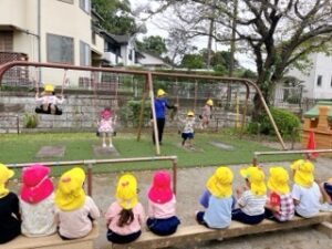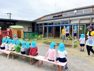 先週の集会は、年長・年中組が運動会で踊った踊りを皆で楽しみましたが、年少・いち