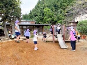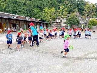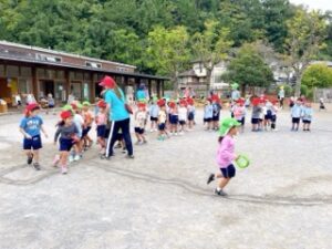 集会後も、クラスの友達といろいろな運動遊びに挑戦したり、皆で楽しんだりする姿が