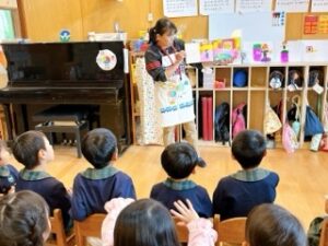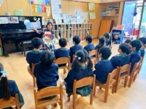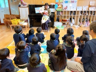 年長組の帰りの時間には、絵本クラブのお母さん達が、クラスに絵本の読み聞かせに来