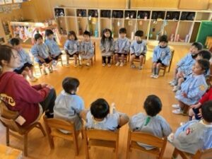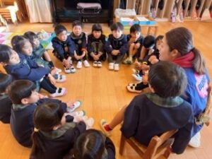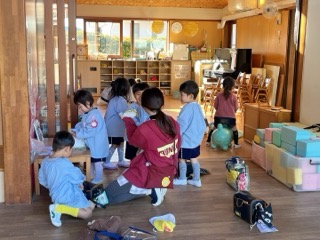 2学期末の終業式では、園長先生から冬休み中に「お家のお手伝いをしましょう」と、