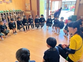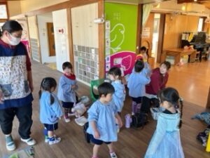 「寒くても身体を動かすと身体が温かくなるよ!いっぱい遊ぼうね!」