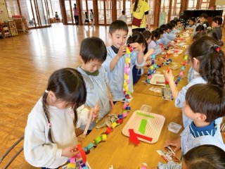 年長組には気付かれないように、こっそり作ってきた年中さん達の様子は以前お伝えし