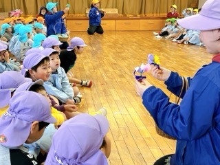 大喜びの年長さん、皆で「ありがとう!」と気持ちを込めてお礼を言いました。