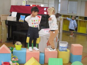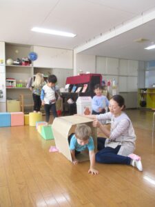 お家を作ったり、ハロウィンお菓子屋さんになったり…子どもたちがイメージを拡げて遊びの場を作っています。