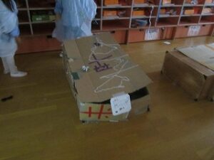 年長組がハロウィンパーティーを開きました。「お菓子がもらえるんだって!」「おばけがいるみたい!」「ハロウィンだから、コスチュームを着ていかなきゃ!」他学年の子どもたちはどんな楽しいことが待っているのかとワクワクして入っていきました。お化けや魔女たちがお出迎えしてくれ、『お菓子コーナー』『魔女の家』『ゾンビの家』『ハロウィンお絵描きコーナー』等、場所、遊び方を教えてくれました。