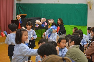 グループ活動、クラスの活動…どのような場でも「こんなふうにしたい!」という一人一人の考えを大切に、教師や友達が互いにかかわったり、イメージしたことを試行錯誤しながら作ったり…それぞれが満足するまで創る時間をもったり…日々のその一瞬一瞬が今日の姿になっていること、長い目で子どもたちの成長を見守り、支えていくことの大切さを改めて感じさせられた一日となりました。年長組の保護者の皆様、本日はお楽しみ会にお越しいただきありがとうございました。