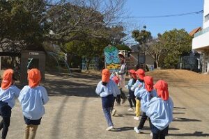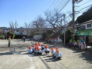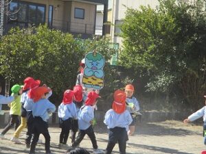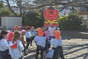 幼稚園のみんなで鬼を追い出すことができたこと、心の中の鬼を退治できたことを友達や先生たちと喜び合っていた子どもたち、一人一人の晴れやかな表情が印象的でした。