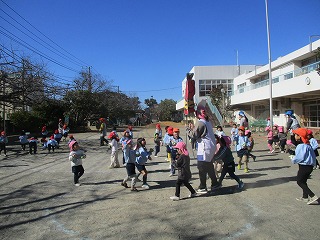 幼稚園のみんなで鬼を追い出すことができたこと、心の中の鬼を退治できたことを友達や先生たちと喜び合っていた子どもたち、一人一人の晴れやかな表情が印象的でした。