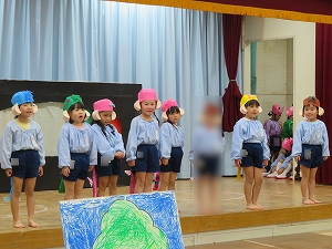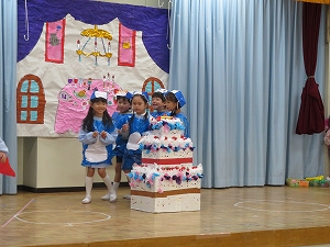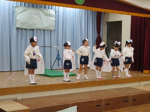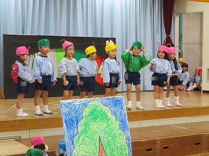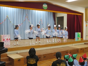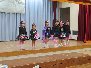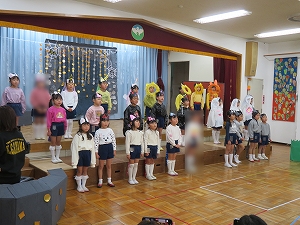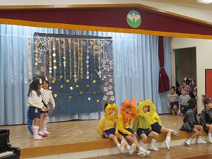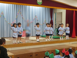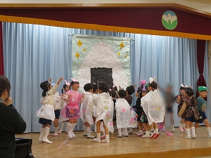 いつもは友達や先生がお客さんですが、当日は大勢の保護者の方、ご家族の皆様が見守る中での表現となりました。ワクワク☆ドキドキする姿も見られましたが、見ている方々から温かい拍手をいただき、嬉しそうな子どもたちでした。
