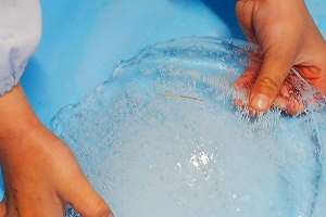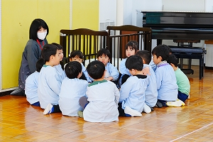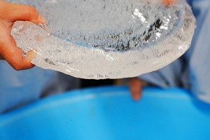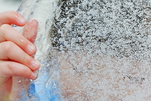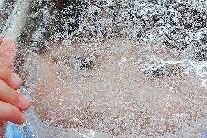 子どもたちは毎日のように氷を見つけて、歓声をあげています。「こんなに大きいの見つけたんだよ。」「昨日はもっと透明だったよ。」冷たい氷を手にして、嬉しそうです。