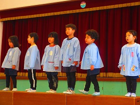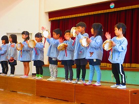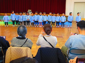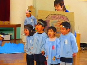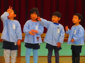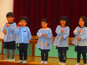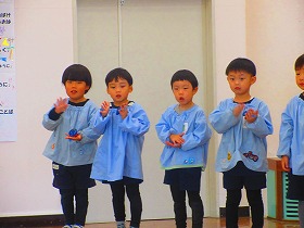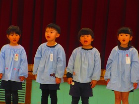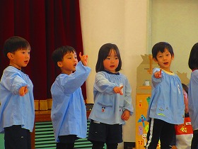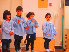 今日は年中あひる組が保護者の方にいらしていただきホールでお楽しみ会を行いました。