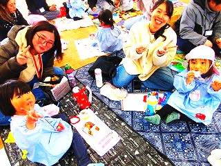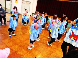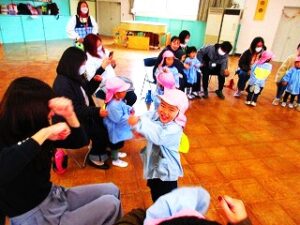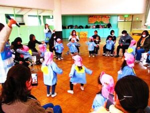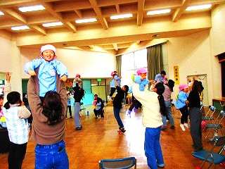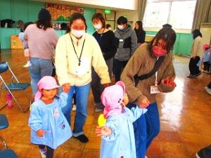 親子で踊りを踊ったりふれあい遊びをしたりして
