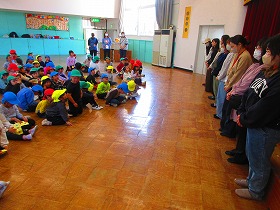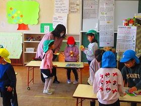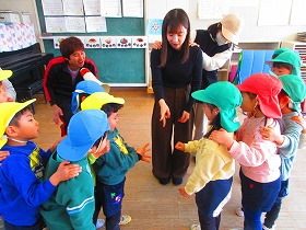 ゲームのお手伝いをしてくださった保護者の方にお礼を伝えて