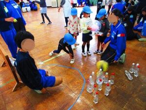 バスケット、紙相撲、ボーリング、箱の中は何?などのゲームや、