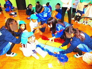 手作りコーナー(糸電話・ぶんぶんゴマ・紙コップ工作)などを