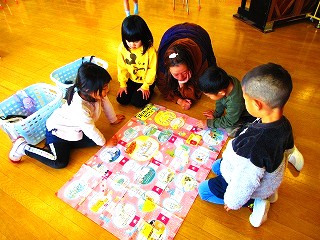 竹馬、凧あげ、すごろく、羽根つきなどの伝承遊び