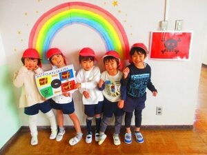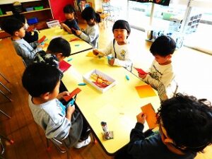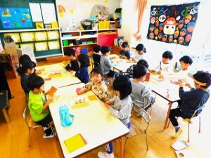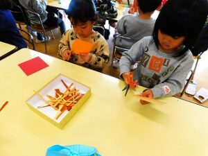 いがぐりの中には、折り紙で栗を作って貼るそうです。