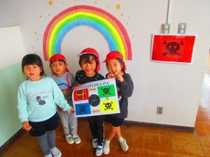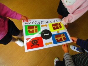 海賊の旗を見つけて、場所にいた先生のお題に答えクリアすると