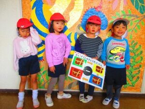 4色の旗の場所のお題に答えて、4つの宝箱シールを