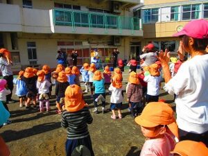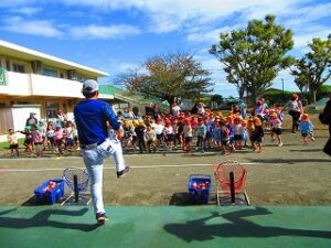 幼稚園に、横浜DeNAベイスターズの方が来園して