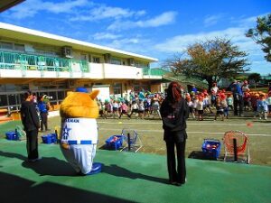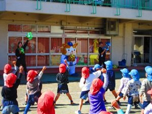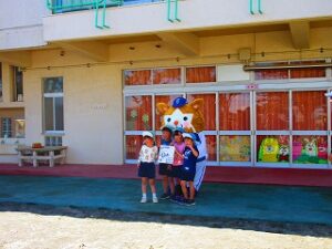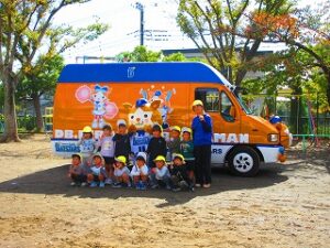 DB.スターマンと一緒に写真を撮ったり、園へのプレゼントとして