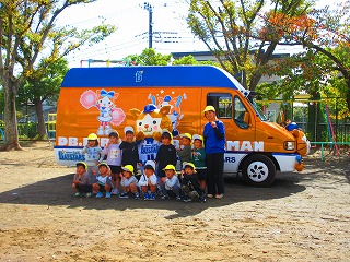 DB.スターマンと一緒に写真を撮ったり、園へのプレゼントとして