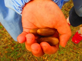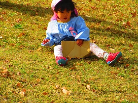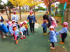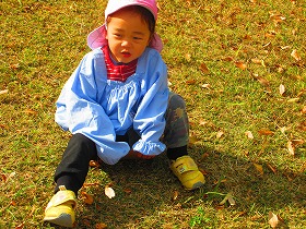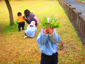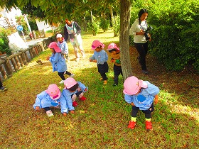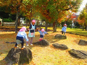 ドングリ拾い夢中になったり、石の上を渡ってみたり、、、深まる秋の自然に触れながら、
