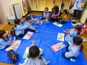 たくさん遊んでお腹が空いたたまご組さん、幼稚園に帰ってお弁当を食べることにしました。
