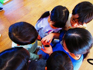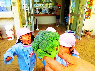 子ども達は黄色い色をしたブロッコリー(??)に興味津々です。