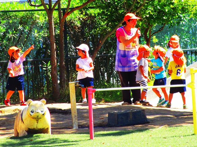 ドングリ、アリなどの自然物を見に園庭を散歩していました。