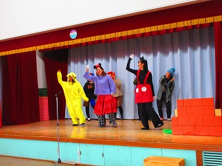 大きなカブの劇では、かわいらしいキャラクターも登場し劇を