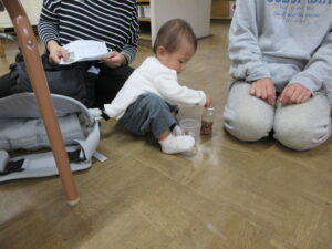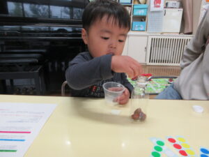 ひよこもも組では、どんぐりを使って、マラカス作りをしました♫