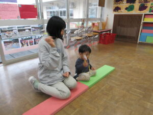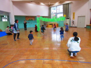 先生が待っているゴールまでよーいどんっ!!元気いっぱいに走っていました(^^♪