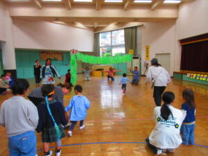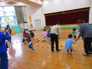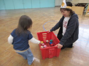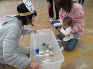 最後は玉入れです!動物さんにご飯をあげました。