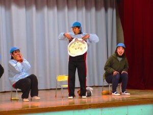 子ども役になりきった先生方が登場すると、次々にお腹の中に
